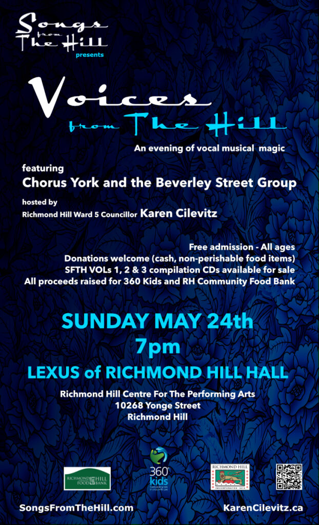 Our 2nd annual ‘Voices from The Hill ‘ event SUNDAY MAY 24 featuring Chorus York and the Beverley Street Group.
